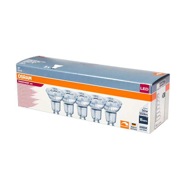 1-PARATHOM PAR16 50 36° 5,5W/940 DIM 230V GU10 - ( УПАК 5 ЛАМП ) - LED лампа OSRAM