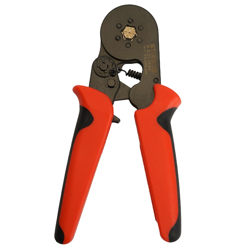 Кримпер STEKKER CTLS006-250 для обжима штыревых втулочных наконечников 0,25-6мм2, 6 сегментов,красный, черный
