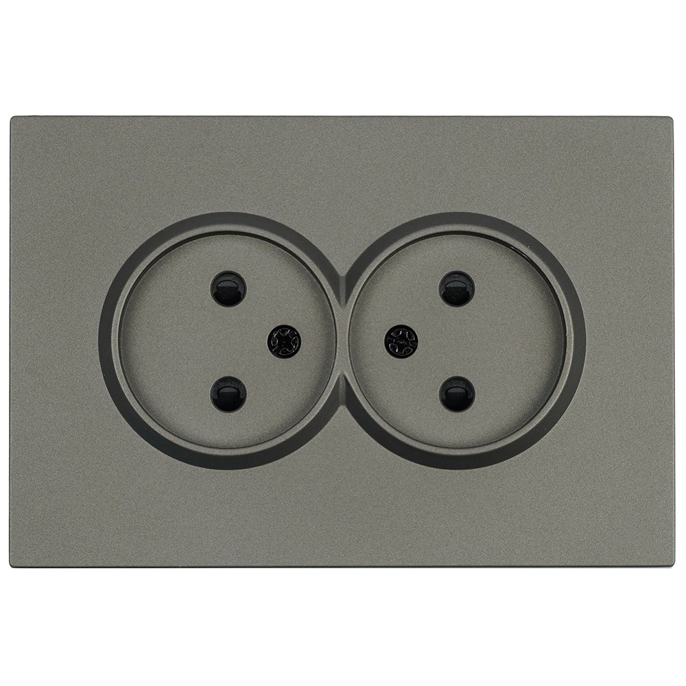 Розетка 2-местная с защитной шторкой, STEKKER, б/з, 250В, 16А, серия Эмили, RST10-5116-09, антрацит, soft touch