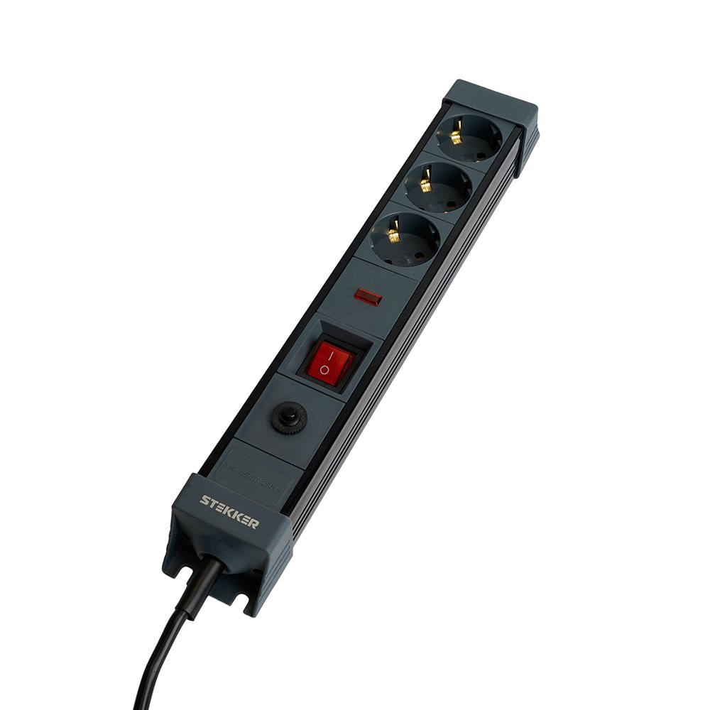 Сетевой фильтр 3-местный с/з STEKKER 3x1мм2, 1,8 м, 250В, 16А, серия Techno, HM22-31-02, черный