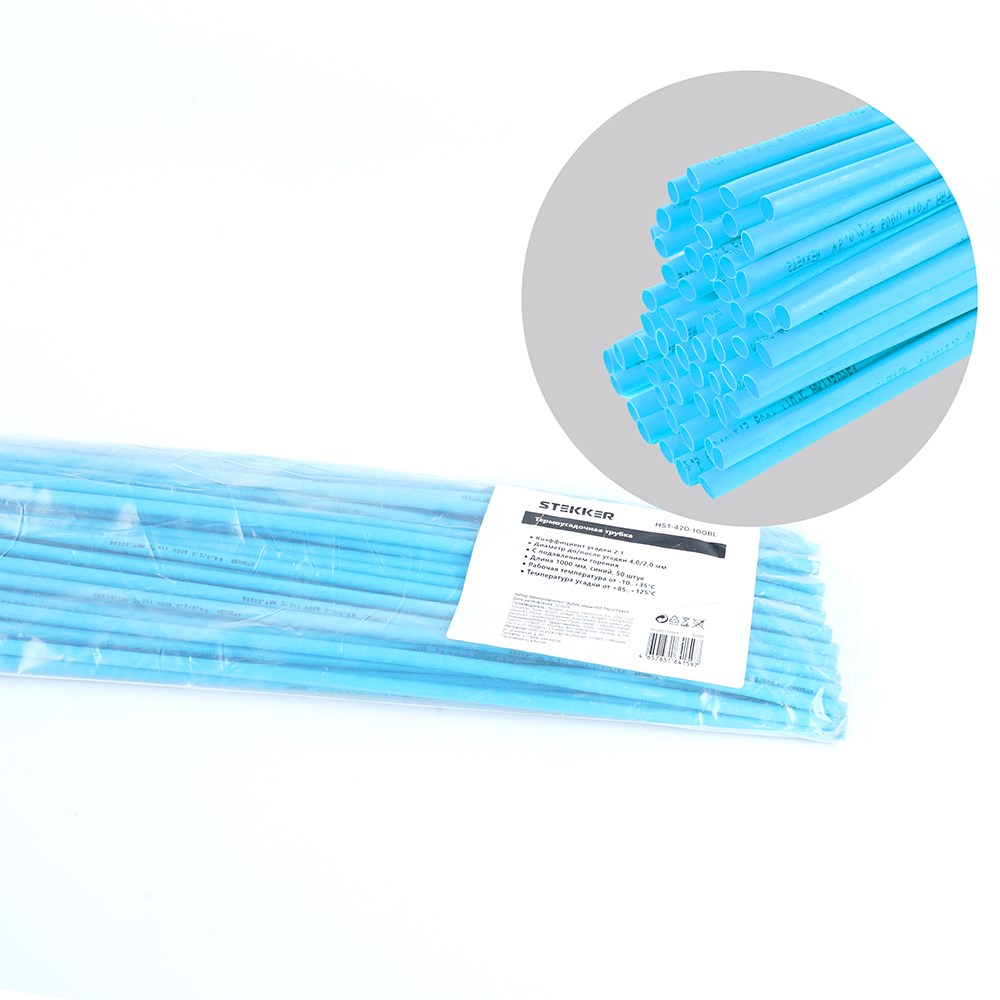 Термоусадочная трубка STEKKER 4,0/2,0 мм, длина 100 см., усадка 2:1, синий HST-420-100BL