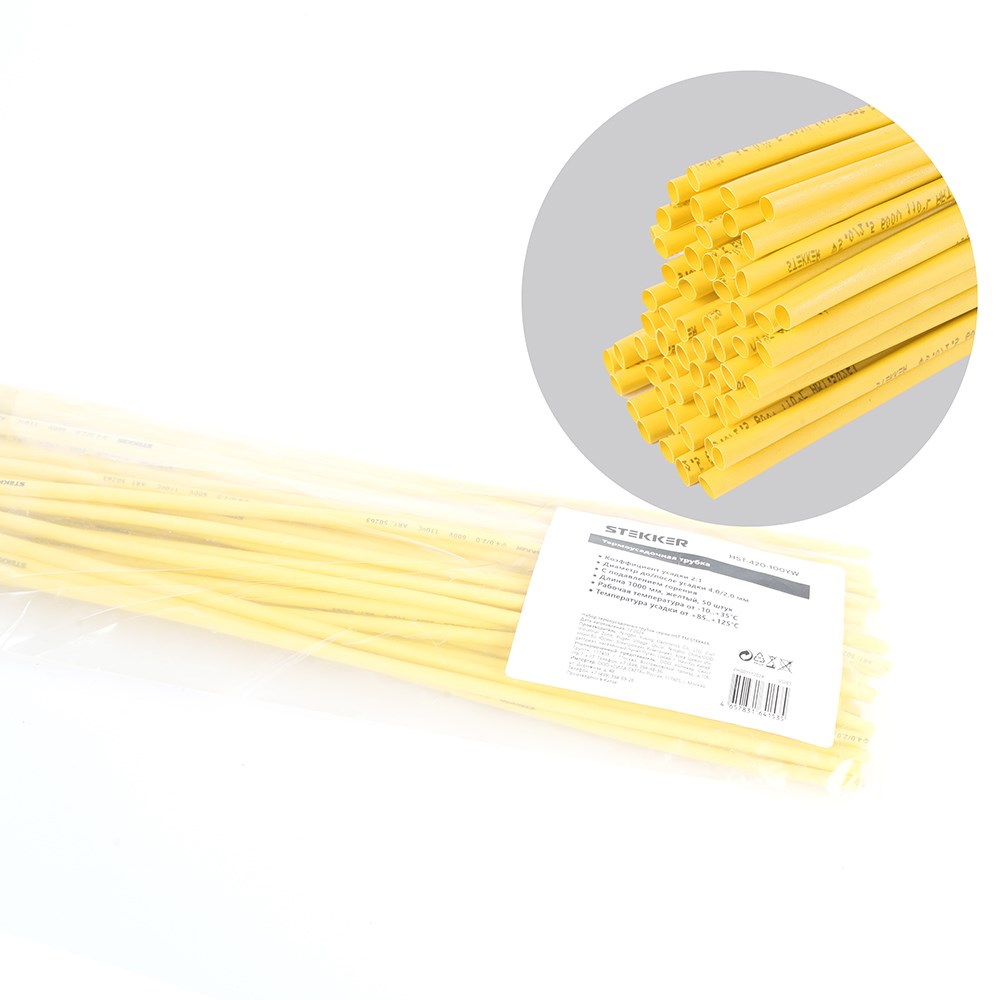 Термоусадочная трубка STEKKER 4,0/2,0 мм, длина 100 см., усадка 2:1, желтый HST-420-100YW