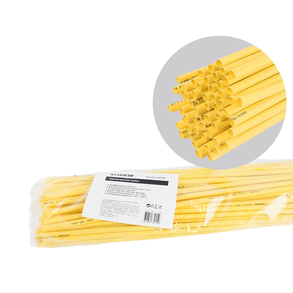 Термоусадочная трубка STEKKER 5,0/2,5 мм, длина 100 см., усадка 2:1, желтый HST-525-100YW