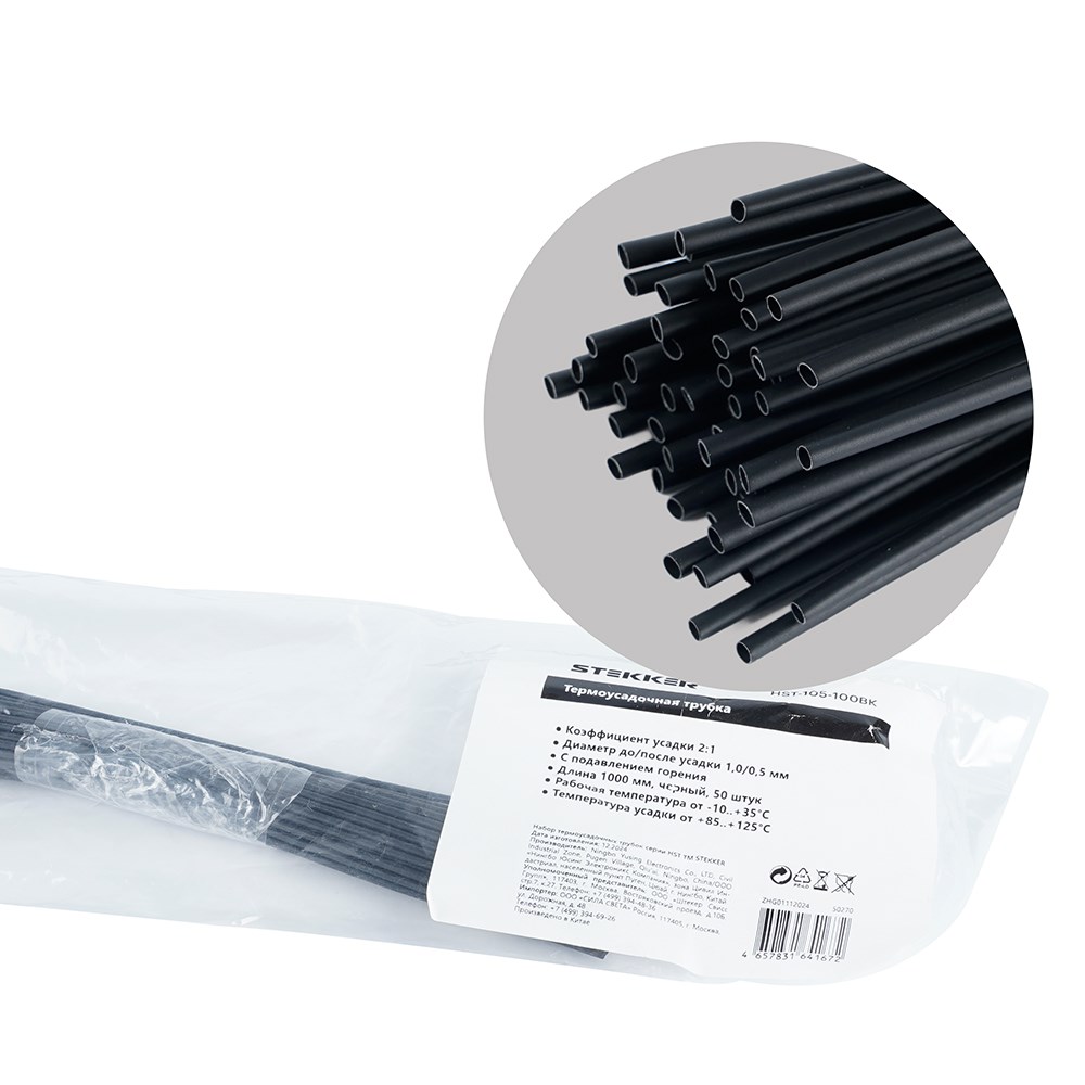 Термоусадочная трубка STEKKER HST-105-100BK, длина 100 см., коэф. усадки 2:1
