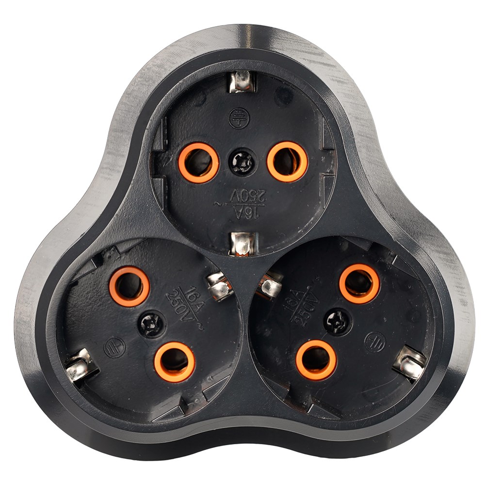 Разветвитель сетевой 3-местный с/з STEKKER ADP16-23-21, 250V, 16A, ABS пластик, черный