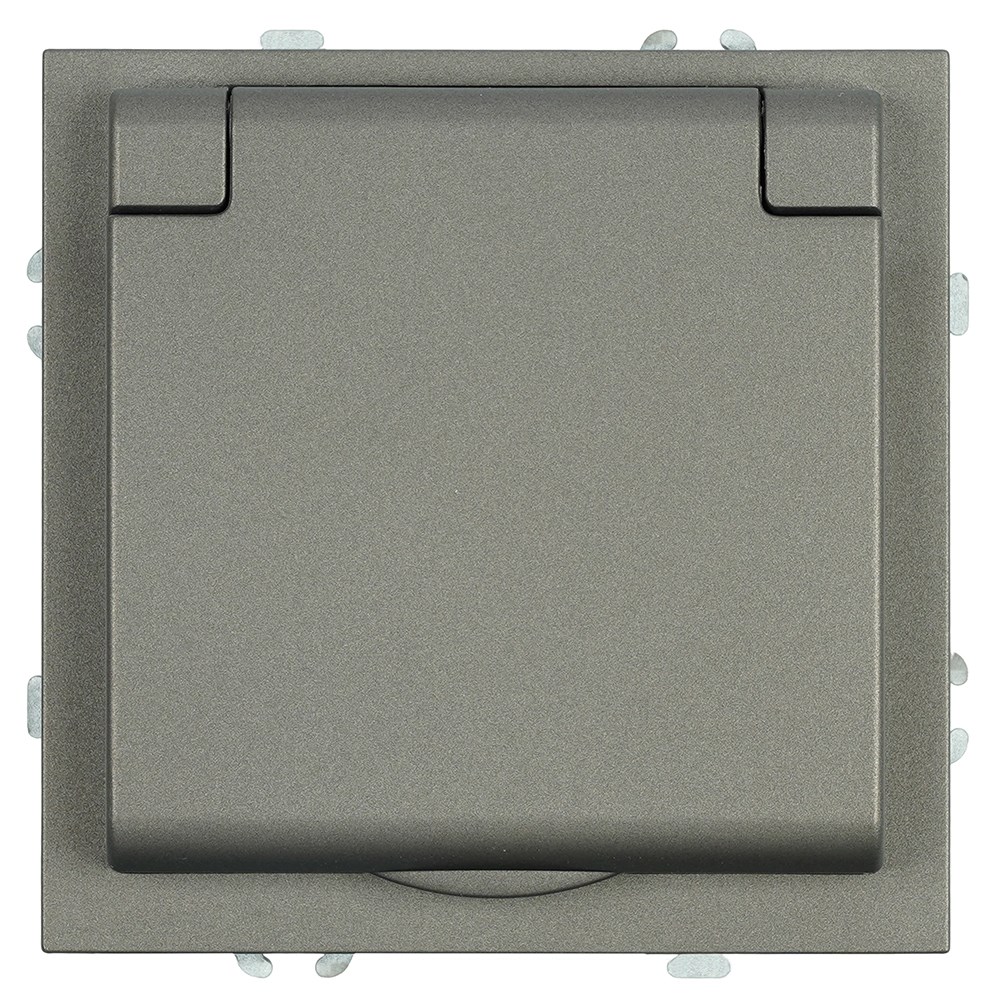 Розетка 1-местная с крышкой с защ. штор, STEKKER, с/з, 250В, 16А, серия Эмили, RST16-5112-09, антрацит, soft touch