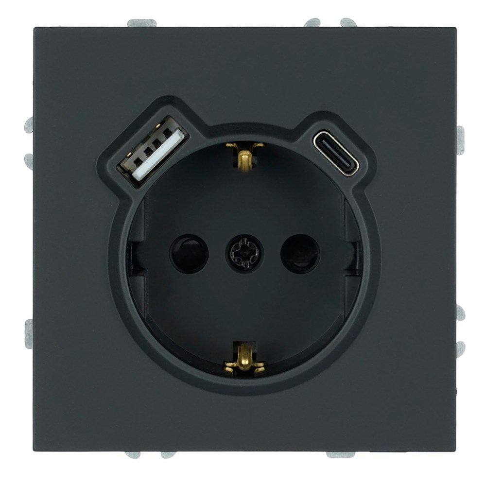 Розетка 1-местная з/ш с/з 16А + USB + Type C (механизм), Stekker, 250В, 20W, серия Эмили, черный уголь, soft-touch, RST16-5119-05