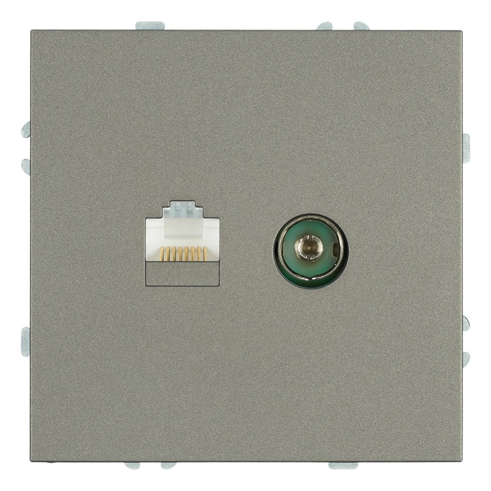 Розетка TV + компьютерная RJ-45 (механизм), STEKKER, серия Эмили, RST00-5106-09, антрацит, soft touch