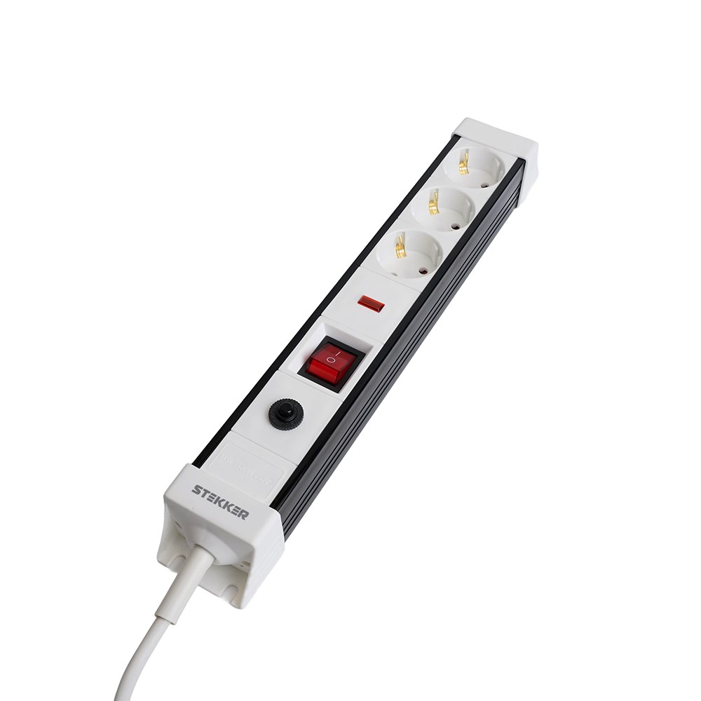 Сетевой фильтр 3-местный с/з STEKKER 3x1мм2, 1,8 м, 250В, 16А, серия Techno, HM22-31-02, белый