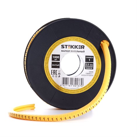 Кабель-маркер "1" для провода сеч. 4мм2 STEKKER CBMR25-1 , желтый, упаковка 1000 шт