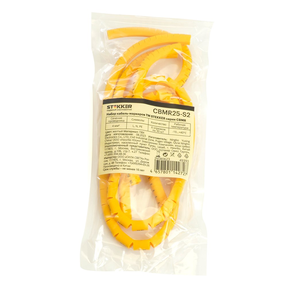 Набор кабель-маркеров "L,N,PE" STEKKER для провода сеч. до 4мм2, желтый CBMR25-S2 (DIY упак 6 отрез по30 шт)