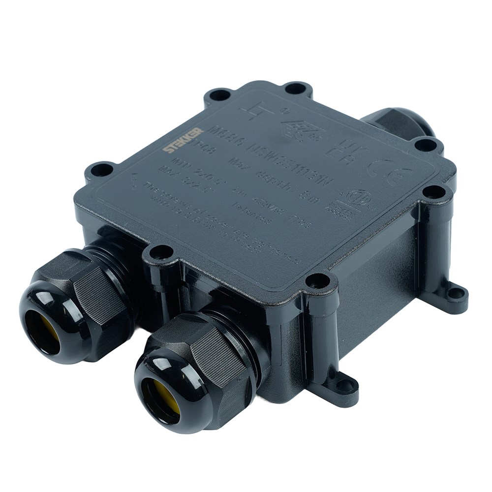 Распределительная коробка STEKKER LD551, количество вводов: 3, поликарбонат, нейлон, цвет черный, размер 130,1*80,5*35,3мм.