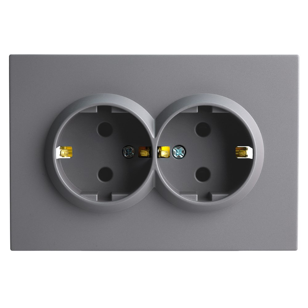 Розетка 2-местная с з/ш, с/з, СЗК, STEKKER, 250В, 16А, серия Эмили, RST16-5114-05ZK, черный уголь, soft touch
